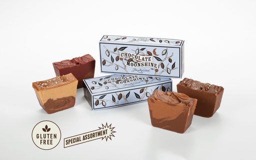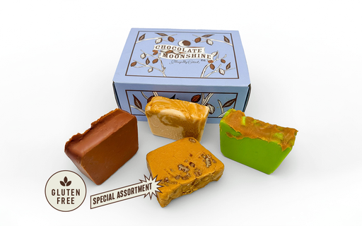 Assortment of 4 - ½ pound freshly cut slices. Distillery Fudge Collection – Bourbon Sea Salt Caramel, Black Cherry Bourbon, Smoked Whiskey, Stout